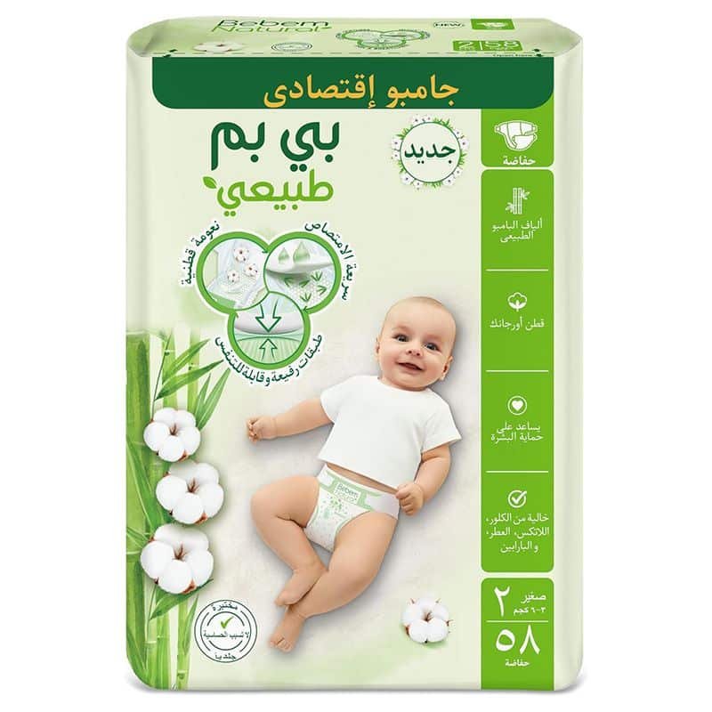 حفاضات بيبيم ناتشورال – 3-6 كجم – مقاس 2 صغير – 58 حفاضة