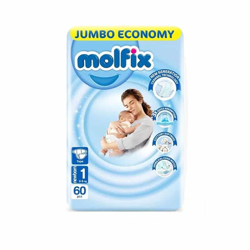 حفاضات مولفيكس – 2 – 5 كجم – مقاس 1 حديثي الولادة – 60 حفاضة