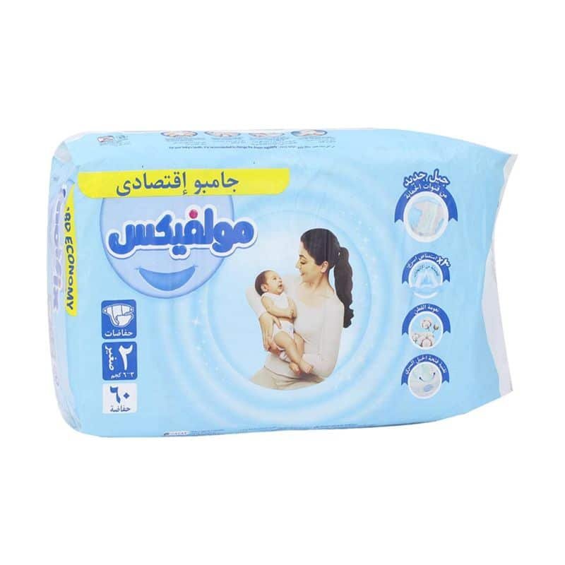 حفاضات مولفيكس – 3 – 6 كجم – مقاس 2 صغير – 60 حفاضة