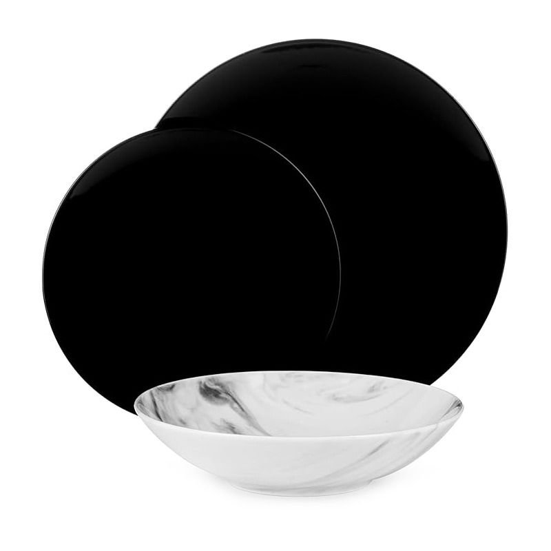 طقم أواني عشاء بورسلين لوتس – أسود وأبيض – كود 6028 رقم 4 – 18 قطعة