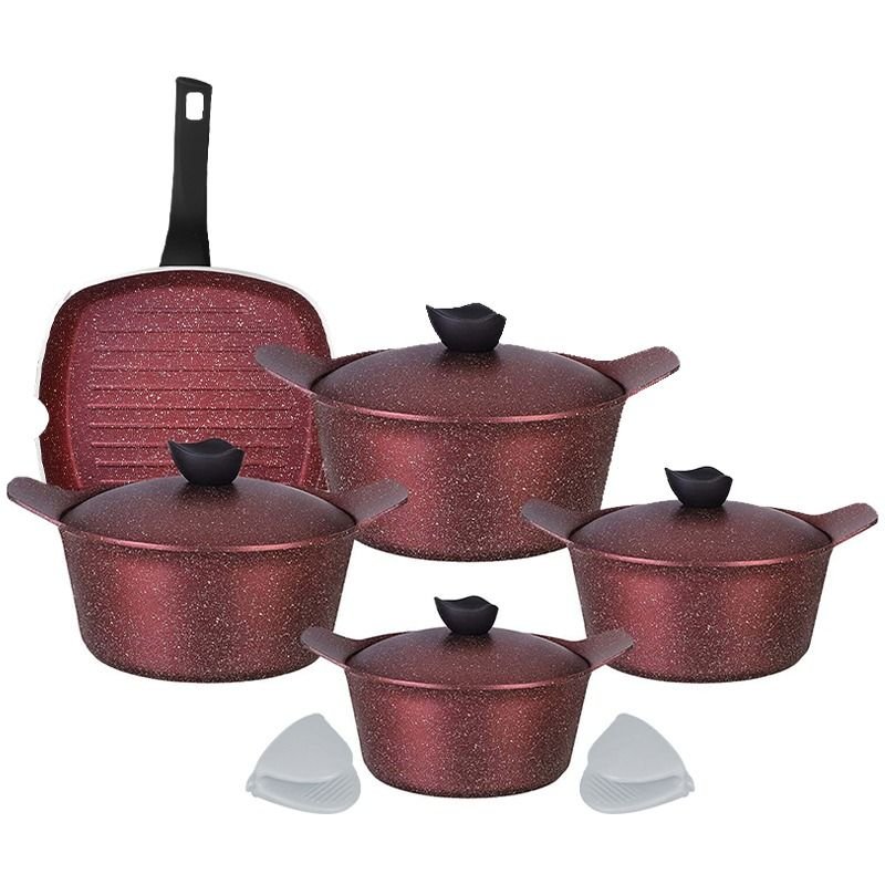 AAone Popular Granite Cookware Set – Burgundy – 11 Pieces