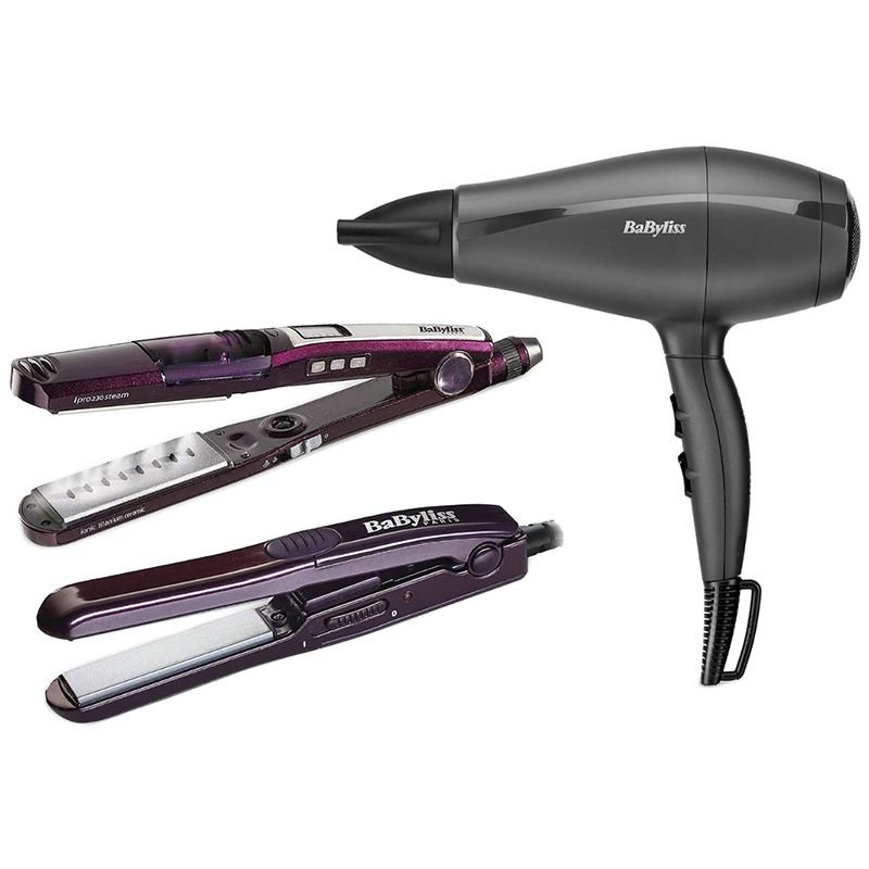 Babyliss I-Pro 230 Steam Hair Straightener + Mini Straightener – Purple – ST396ALE + Babyliss Power Dry Light 2000 Hair Dryer – 2000W – Black – 5910E