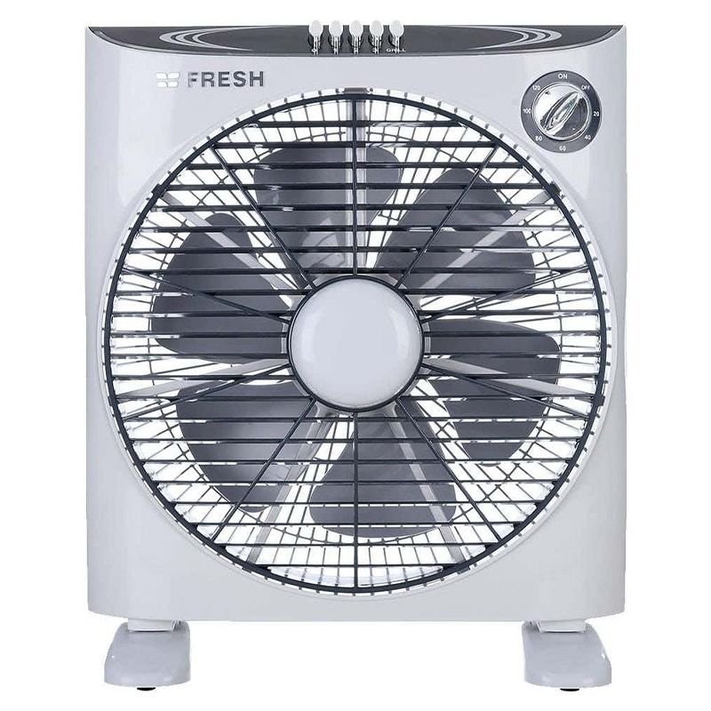 Fresh Amar Box Fan – 14 Inch – 3 Speeds – Rotating Grilling – White & Grey