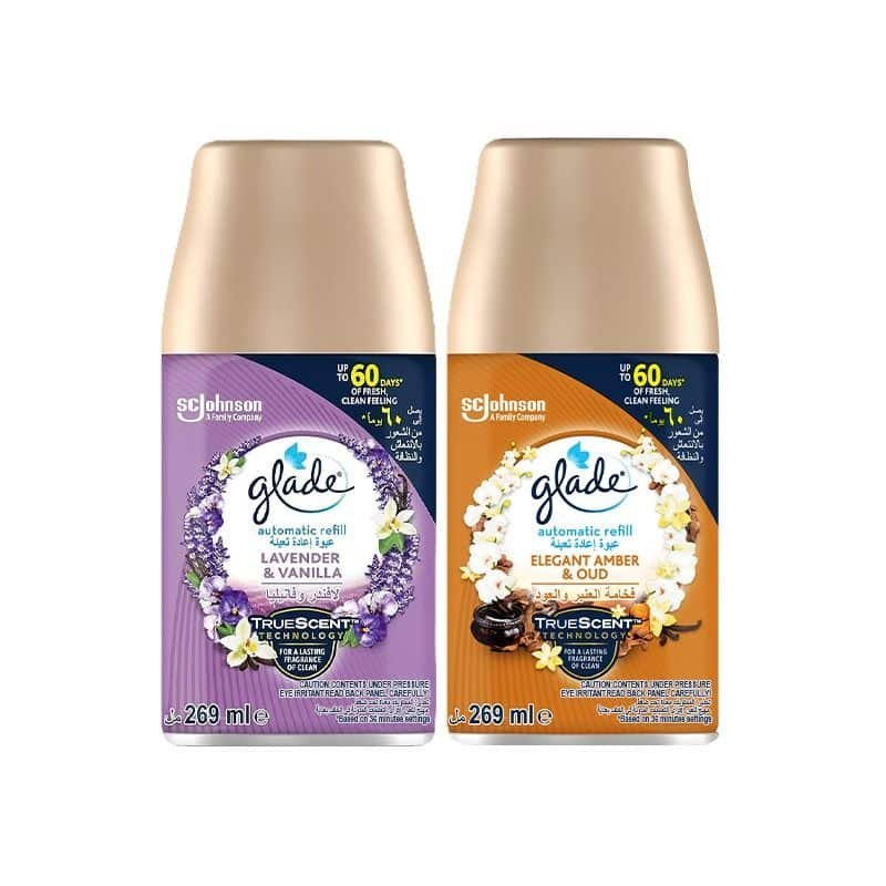 Glade Elegant Amber & Oud Automatic Refill – 269ml + Glade Lavender & Vanilla Automatic Refill – 269ml
