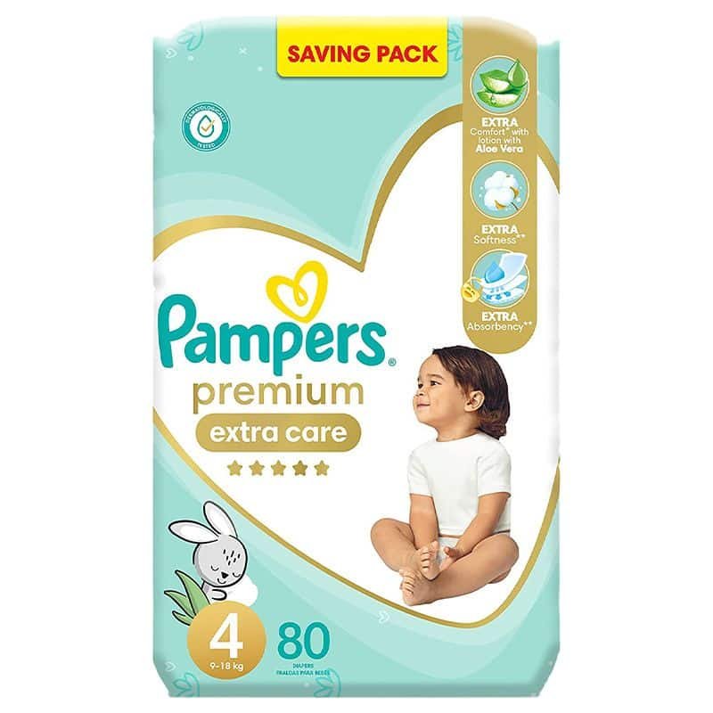 Pampers Premium Extra Care Diapers – 9 – 18Kg – Size 4 – 80 Diapers