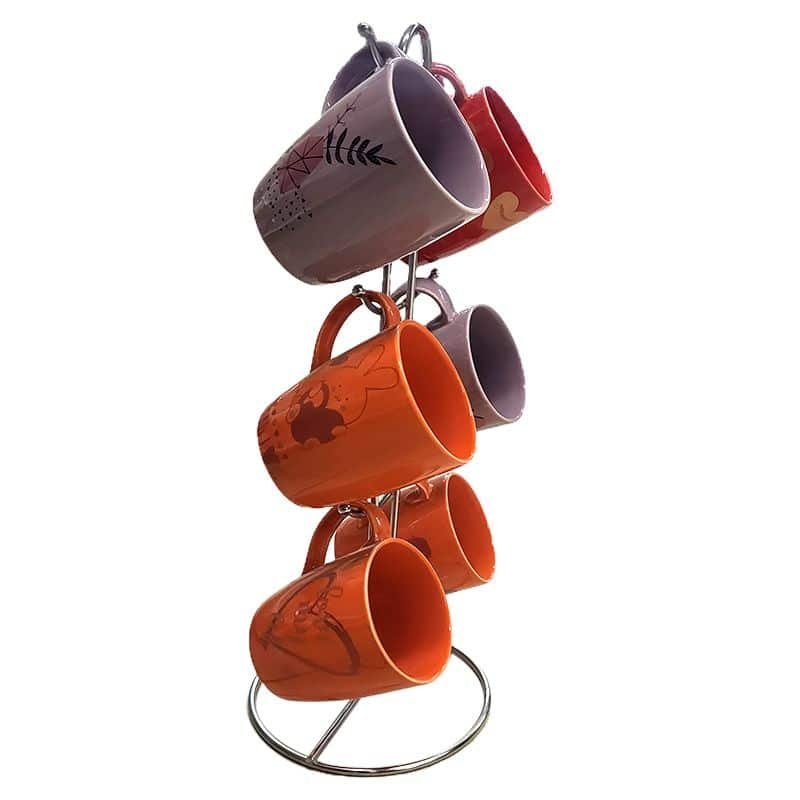 Porcelain Drinkware Set With Metal Stand – 1027 – 6 Pieces